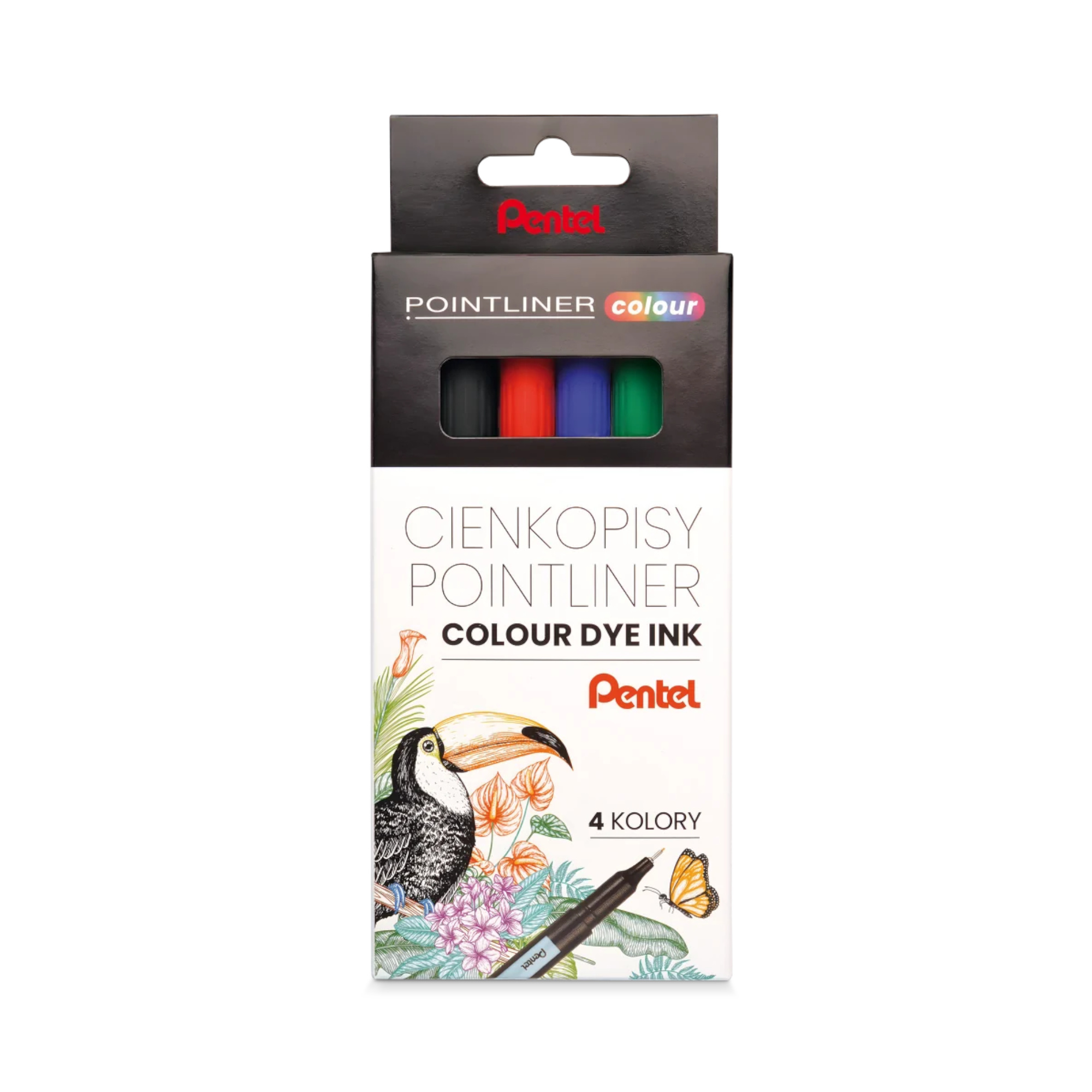 Cienkopisy Pointliner Color Pentel. Zestaw cienkopisów w 4 podstawowych kolorach przeznaczony do prezycyjnego pisania, rysowania i szkicowania.