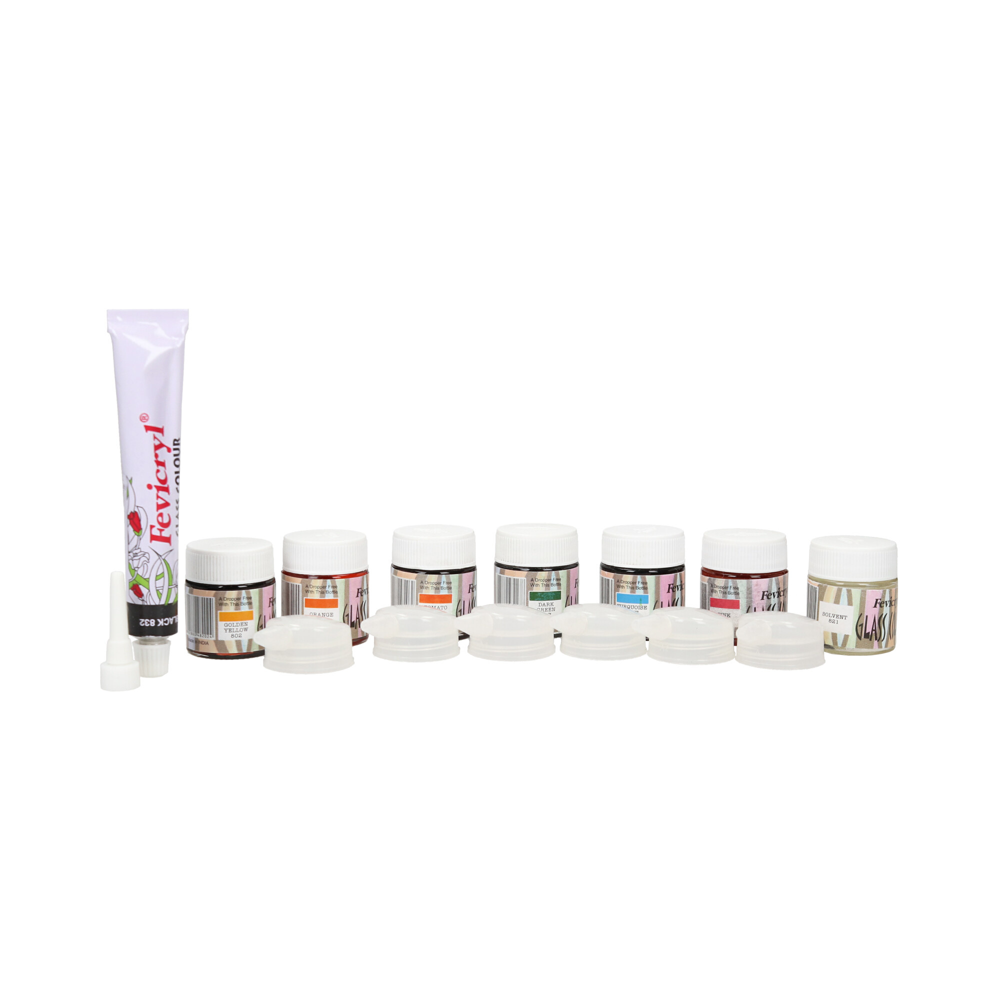 Zestaw transparetnych farb do malowania na szkle Fevicryl Glass Colour Kit marki Pidilite.