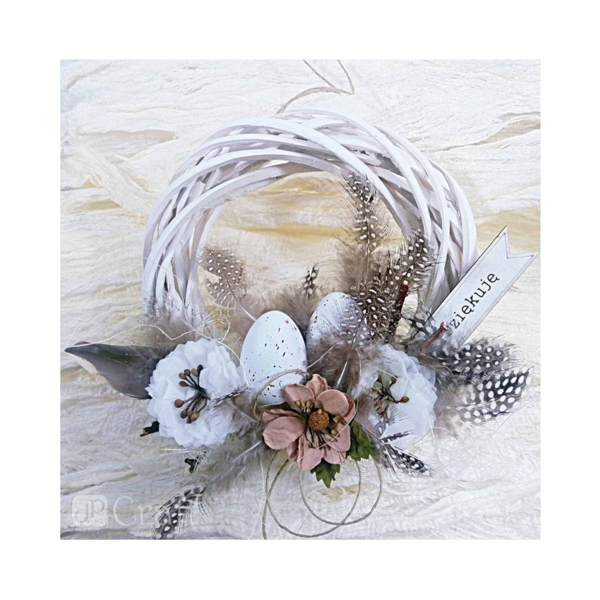 Jajka przepiórcze z piórkami DpCraft białe – 12 szt.