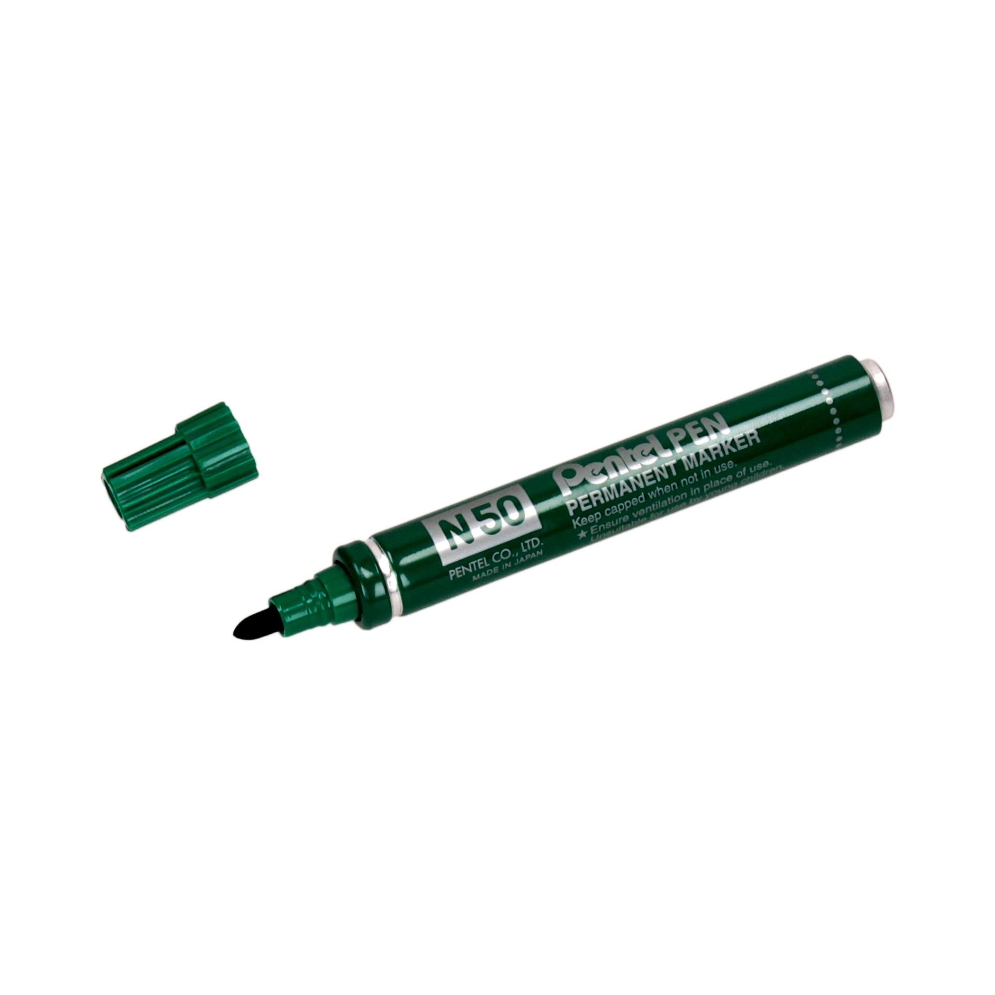 Marker permanentny Pentel N50 to solidny i odporny produkt o szerokim spectrum zastosowań. Aluminiowa obudowa, niezwykle trwała końcówka kreśląca i niespotykanie długa linia pisania predysponują marker Pentel N50 do użytkowania na niestandardowych powierzchniach takich jak: metal, szkło, plastik czy guma. Nowej generacji tusz pozostawia grubą, wyrazistą i jednolitą linię a okrągła końcówka zapewnia precyzyjną i odpowiednio wyważoną aplikację. Wodoodporne właściwości tuszu gwarantują dodatkowo dużą trwałość naniesionych treści.