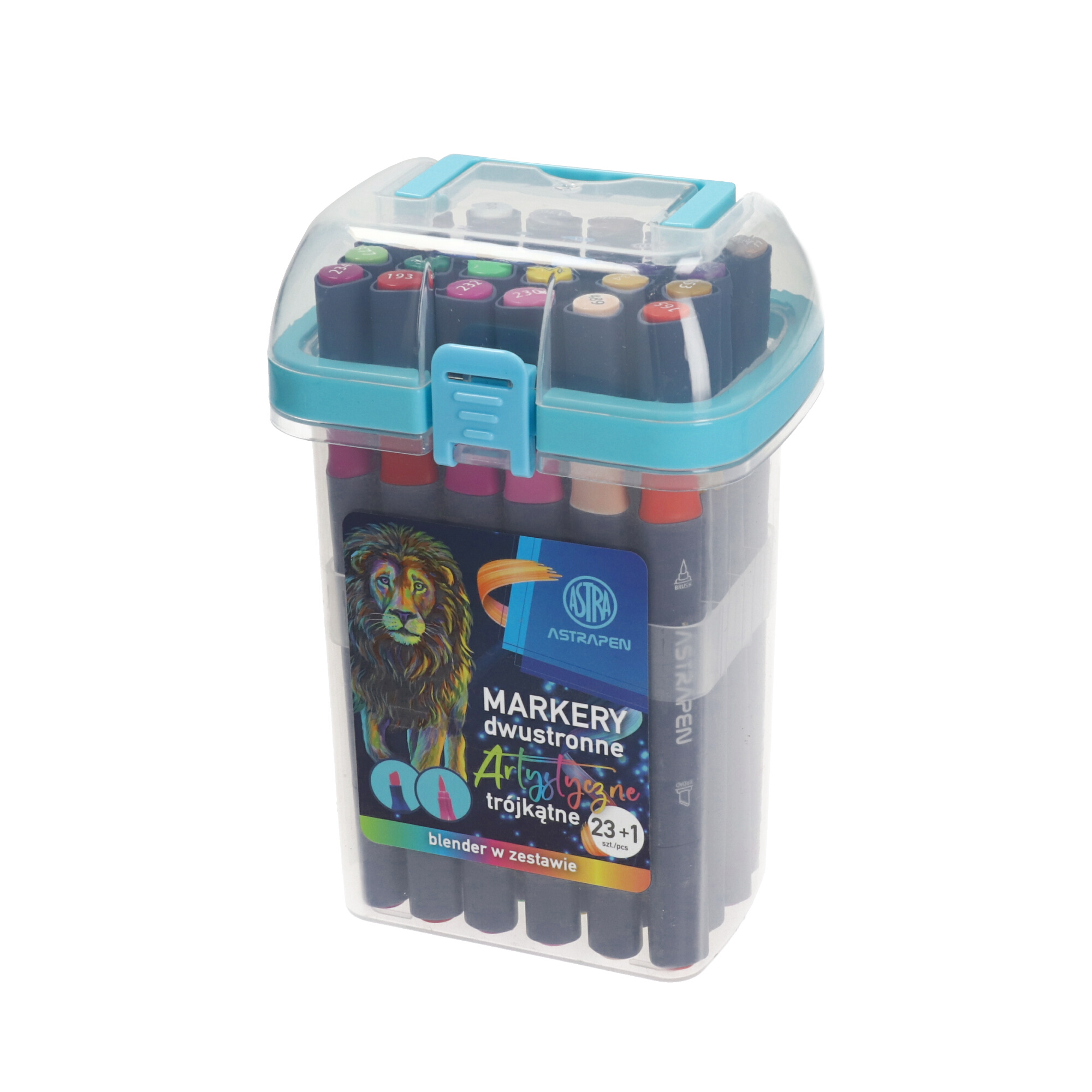 Markery artystyczne dwustronne AstraPen. Zestaw 24 intensywnych kolorów z dwiema końcówkami, zaprojektowany z myślą o kreatywnym malowaniu, pisaniu i ozdabianiu.