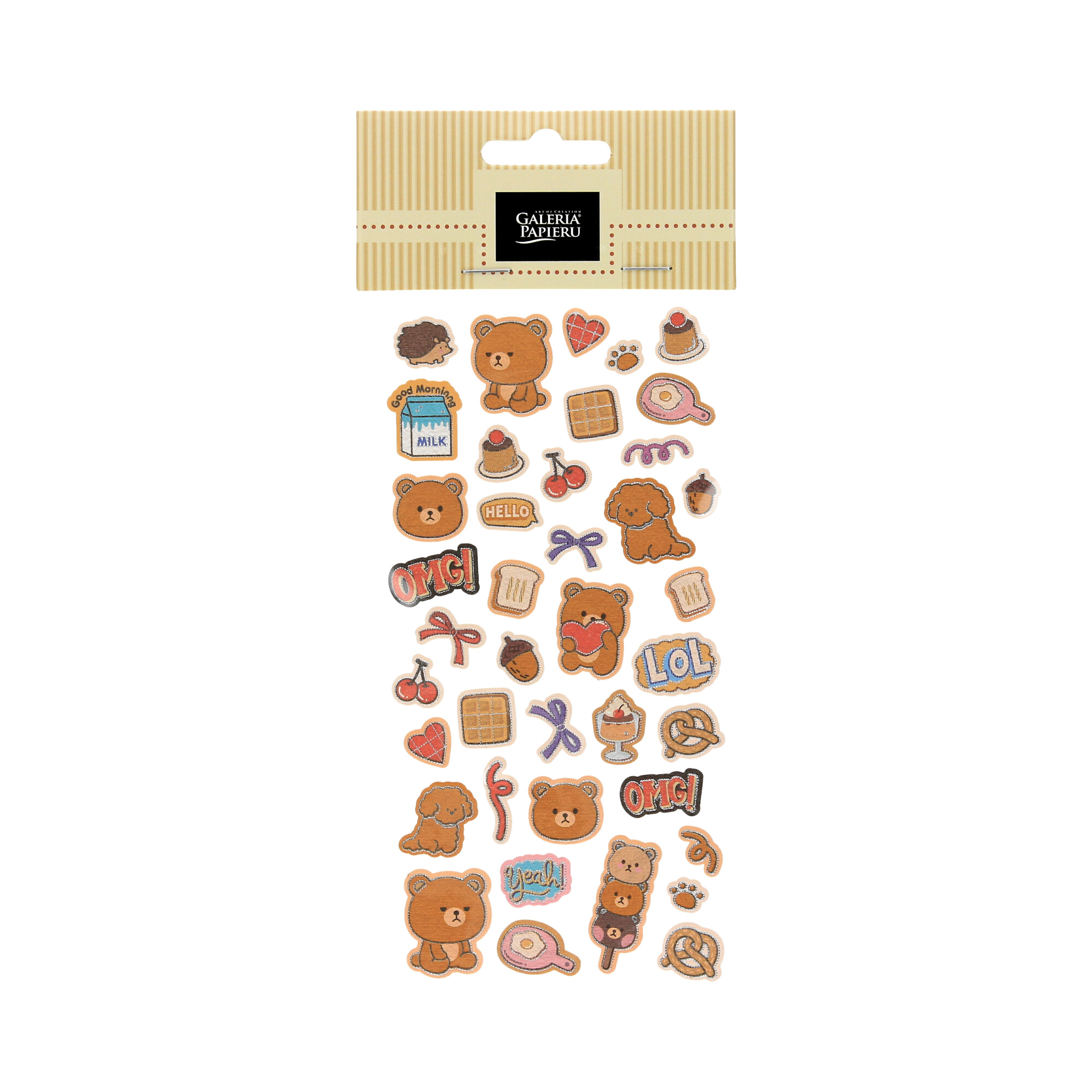 Zestaw naklejek z uroczej kolekcji Enjoy, przedstawiający misie w otoczeniu smakołyków marki Galeria Papieru, to idealny dodatek do kreatywnych projektów.