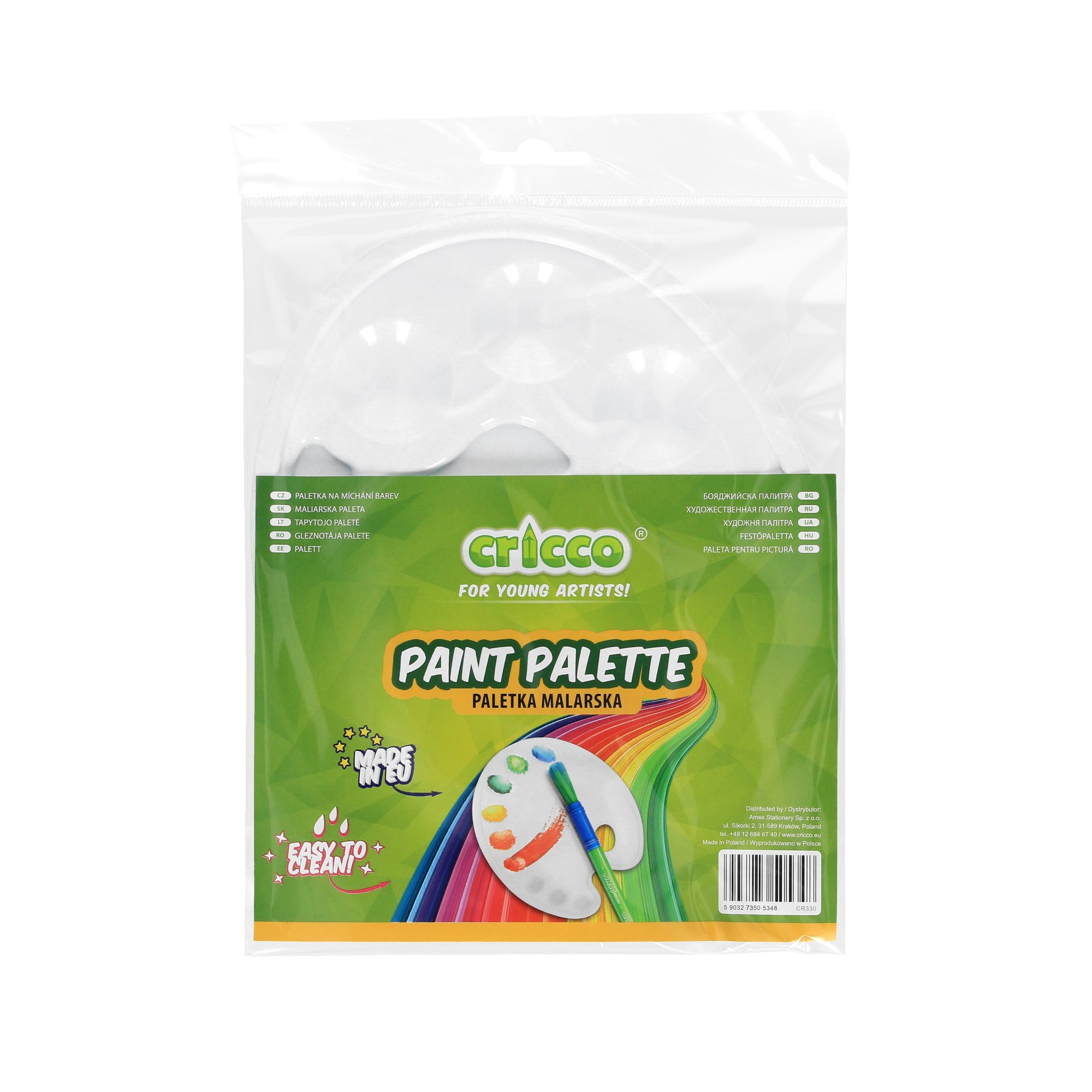 Uniwersalna paletka marki Cricco do wszelkich prac plastyczno – artystycznych. Praktyczne otwory pozwalają na uporządkowanie barw oraz mieszanie kolorów.