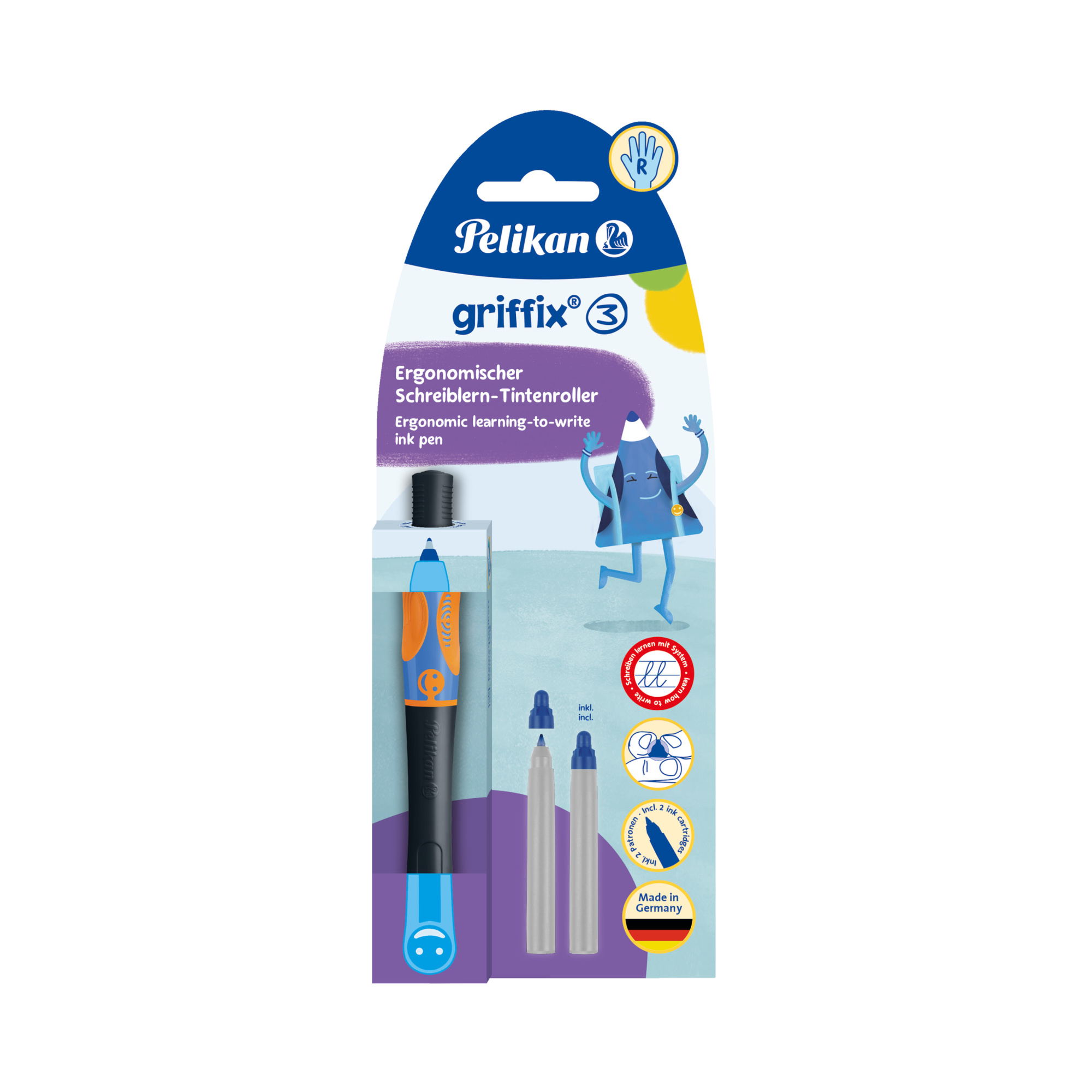 - Ergonomiczny kształt: Trójkątny przekrój pióra i specjalna strefa chwytu ułatwiają prawidłowe ułożenie palców.