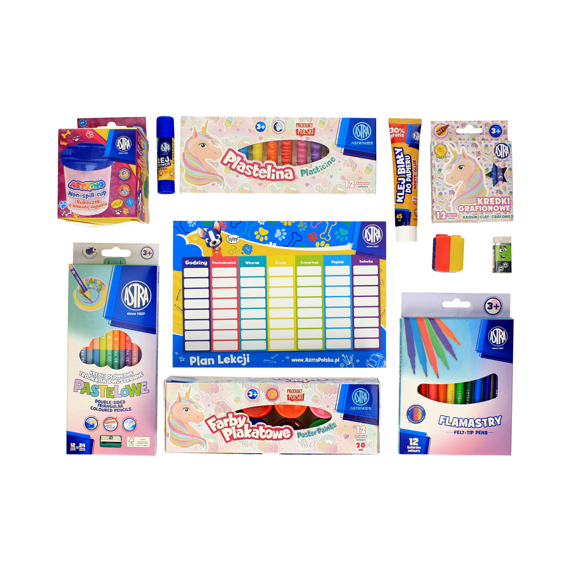 - Wszystkie przybory szkolne zgromadzone w jednym miejscu